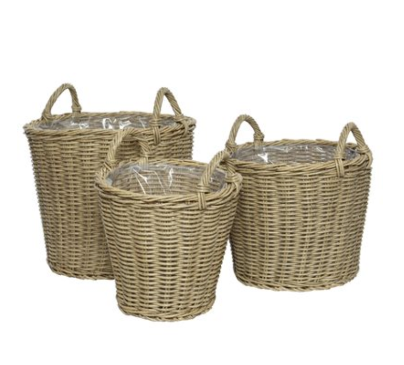 3Pc Camille Polyrattan Round Planter Basket Set With Handles Natural